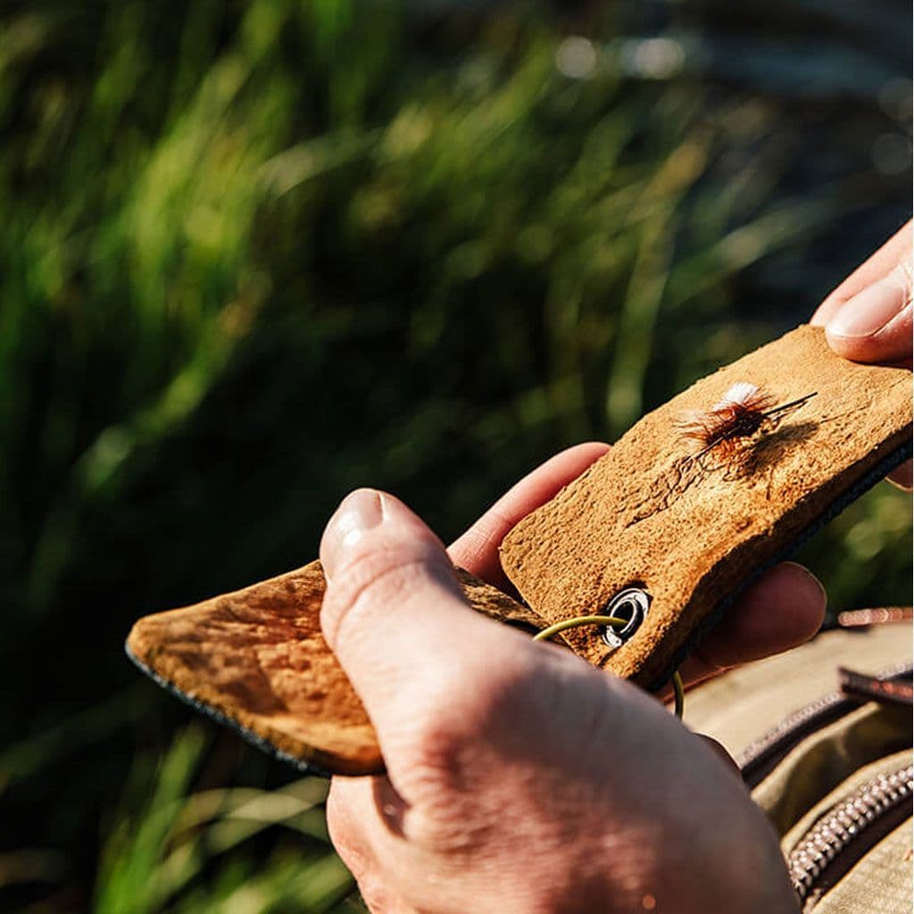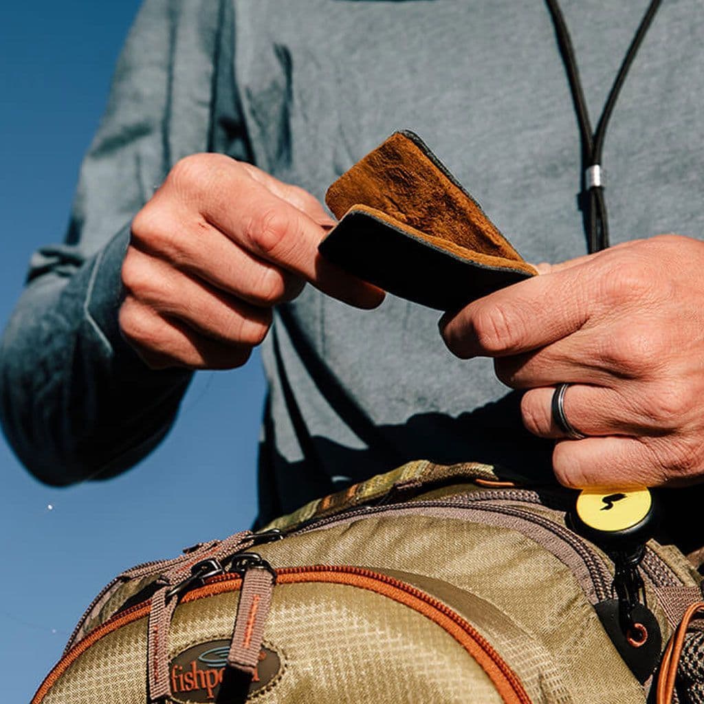 Loon Amadou Patch - Amadou is primarily composed of a mushroom: "Fomes fomentarius", and its primary purpose is taking soggy, water-logged, good-for-nothing dry flies and getting them ready to fish again. A simple squeeze between the two pads of this magical material sucks out water from a drowned fly, restoring its ability to float. Though the Loon Amadou Patch stands alone as a means of keeping flies floating, it is best viewed as a piece of the dry fly puzzle that includes some kind of dip or gel, and/or a powder floatant