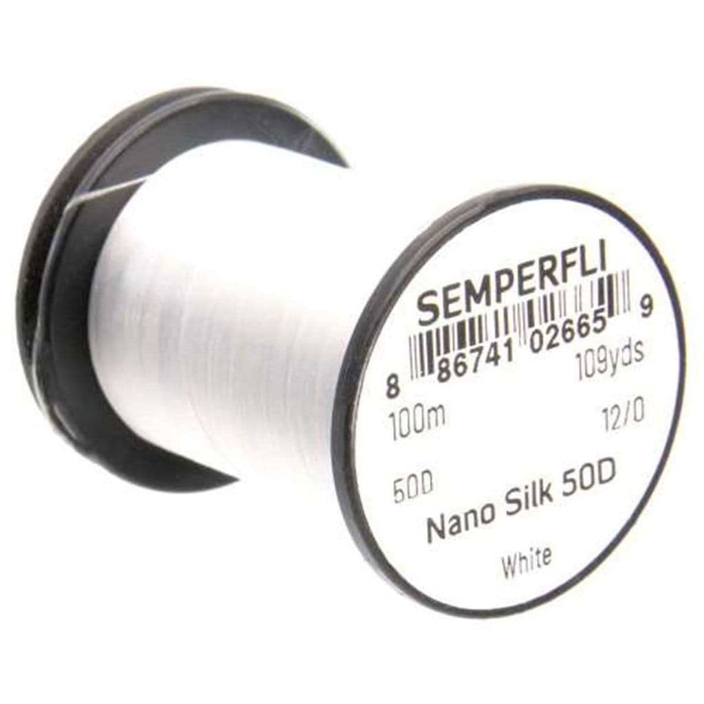 Semperfli Nano Silk 50D 12/0 is designed for flies sizes 6 to 32, which is ideal for most fly tyers. However do not be fooled because of Nano 50D's thin diameter, Nano Silk 50D 12/0 is stronger than 6/0 polyester thread yet is less than 1/20th of the diameter. As a result it can be used for any fly where you do not want to see your thread.