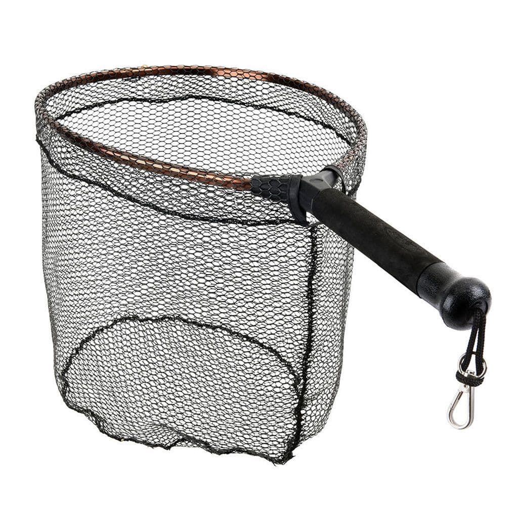 Vision Rivermaniac Net - The Vision Rivermaniac Net has a lightweight aluminium frame measuring 39cm x 31cm, a short 18cm handle and 35cm deep rubber mesh net. You'll find the Rivermaniac net the perfect size for the modern nymph and trout fisher. The net features a comfortable EVA handle with the Rivermaniac logo detail that compliments the colour scheme of the Rivermaniac rods and reels.